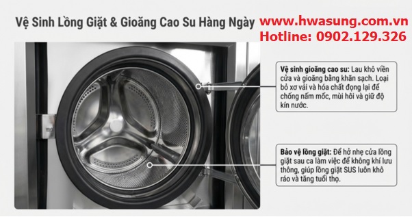 Máy giặt bệnh viện cần sự bền bỉ tuyệt đối.